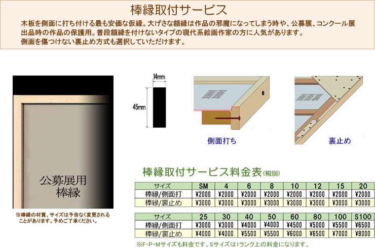 棒縁取付サービス・レンタル額縁 |